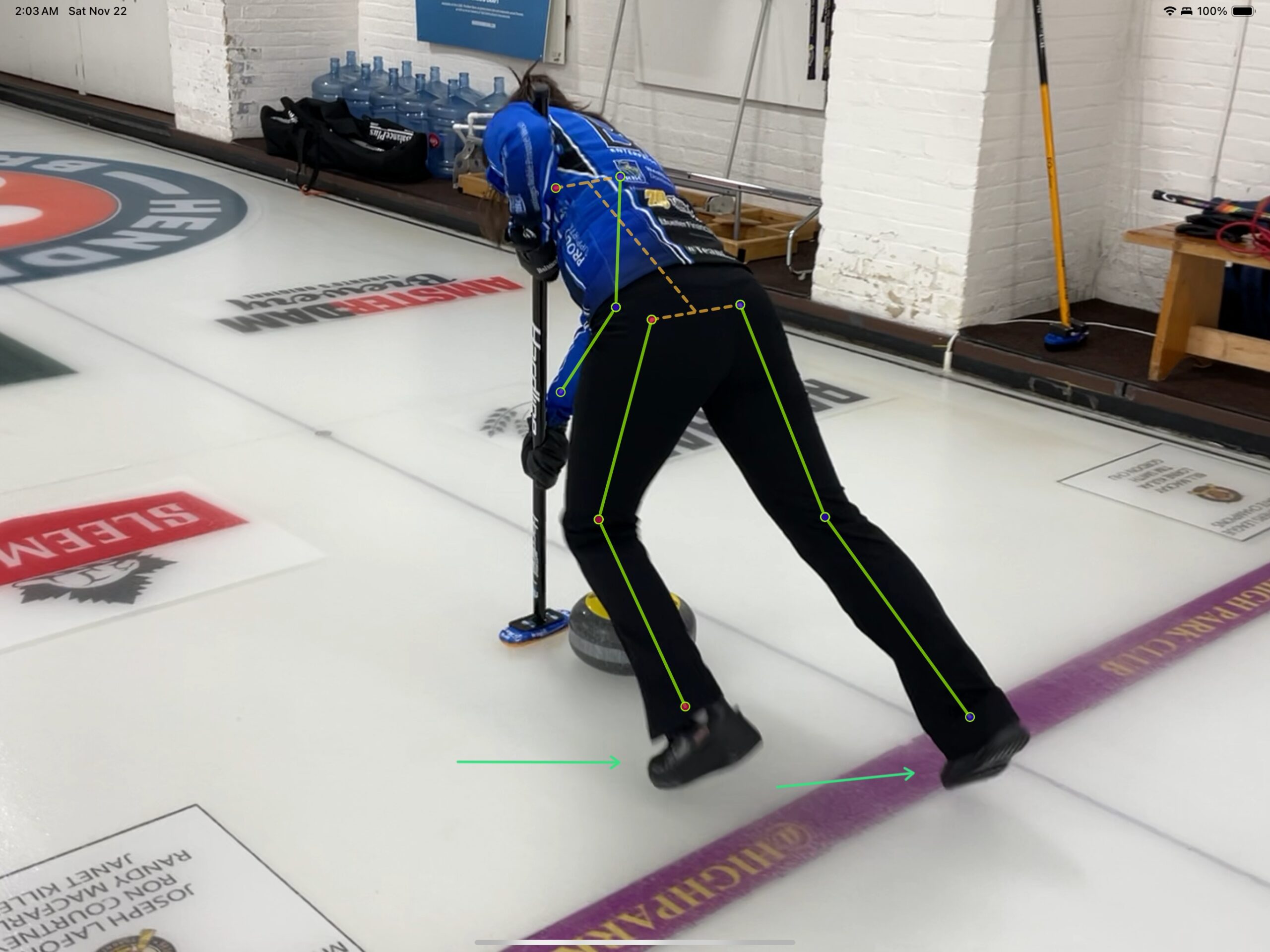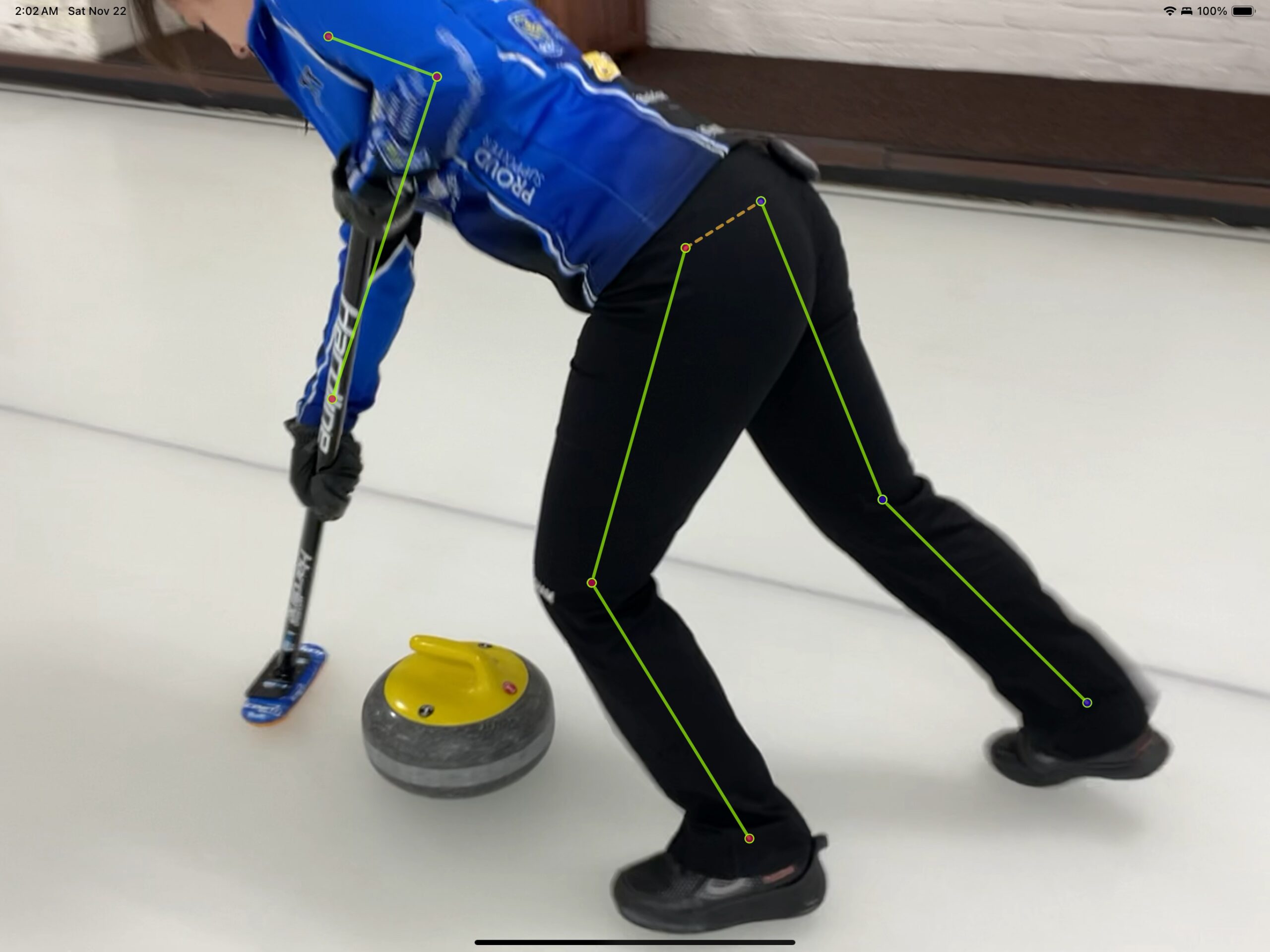 The “bunny hop” tactic is designed to increase the force developed during the push portion of a stroke to a value that is higher than what the athlete would produce otherwise. However, while the “bunny hop”, if executed well, can lead to greater vertical force during the push portion of a stroke, the tactic is not without tradeoffs. Describing those tradeoffs is the purpose of this article. To do so, I am ably assisted by Sarah Leung, who throws lead stones for Team Émilie Lovitt.