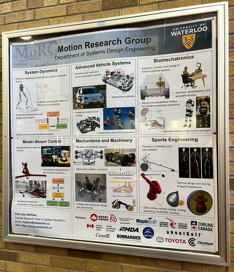 We would also again like to thank Dr. John McPhee of System Design Engineering at the University of Waterloo for his assistance in the calibration effort, and I would like to especially thank John’s graduate student from the department’s Motion Research Group, Bianca Simone, for her kind help and collaboration.Â